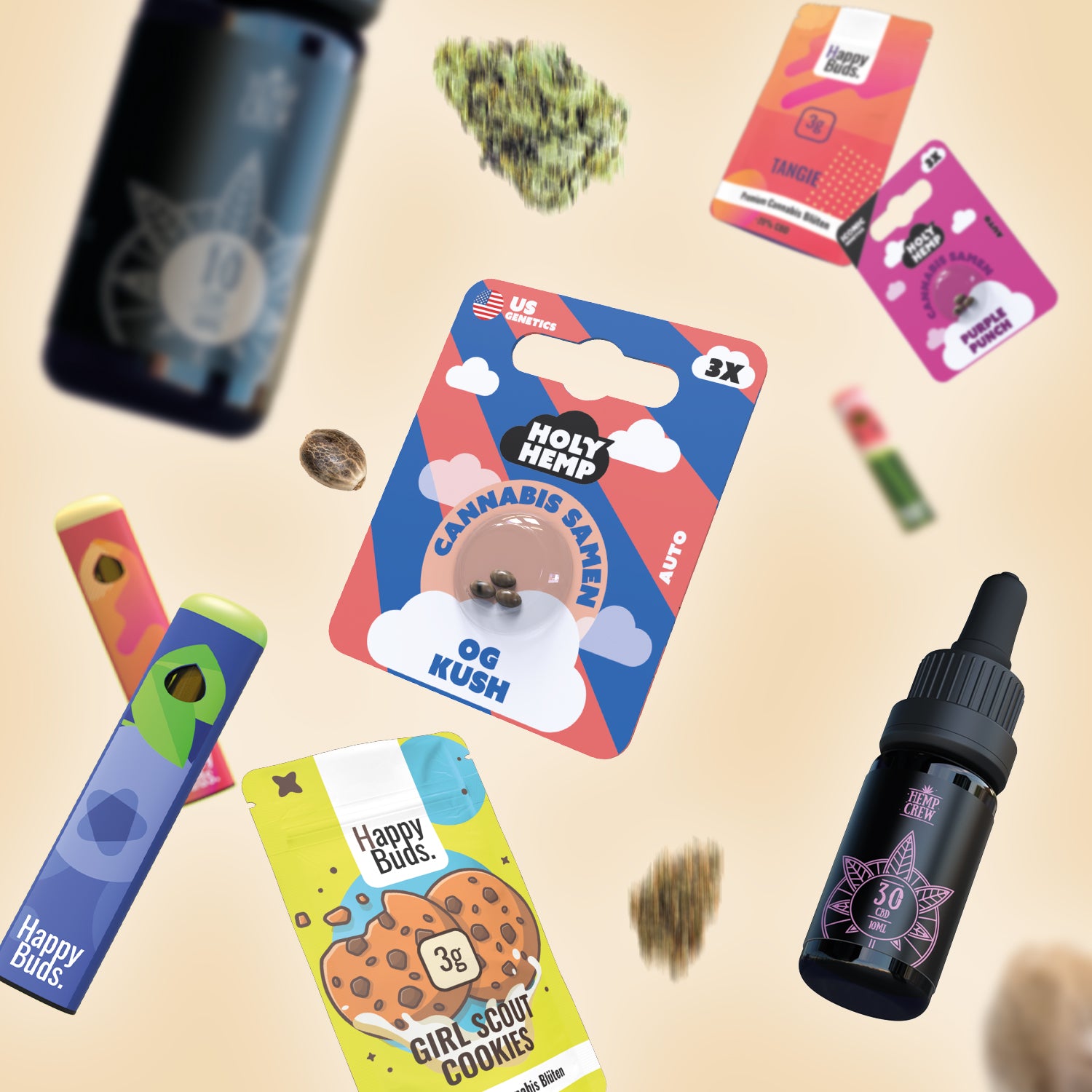 In der Kategorie Cannabissamen finden Sie herausragende Genetiken von renommierten Marken wie Holy Hemp, Doja und Grounded Genetics. Unsere hochwertigen Blüten, darunter die beliebten Sorten von HappyBuds, stehen für Qualität, die Ihre Kunden überzeugen wird. Auch im Bereich Öle und Kosmetik setzen wir auf höchste Standards mit natürlichen und innovativen Produkten von HempCrew. Ergänzt wird unser Sortiment durch moderne Vaping-Lösungen, effektives Zubehör für den Grow-Bereich, stilvolle Paraphernalia sowie praktische Displays, die Ihre Verkaufsflächen perfekt in Szene setzen.