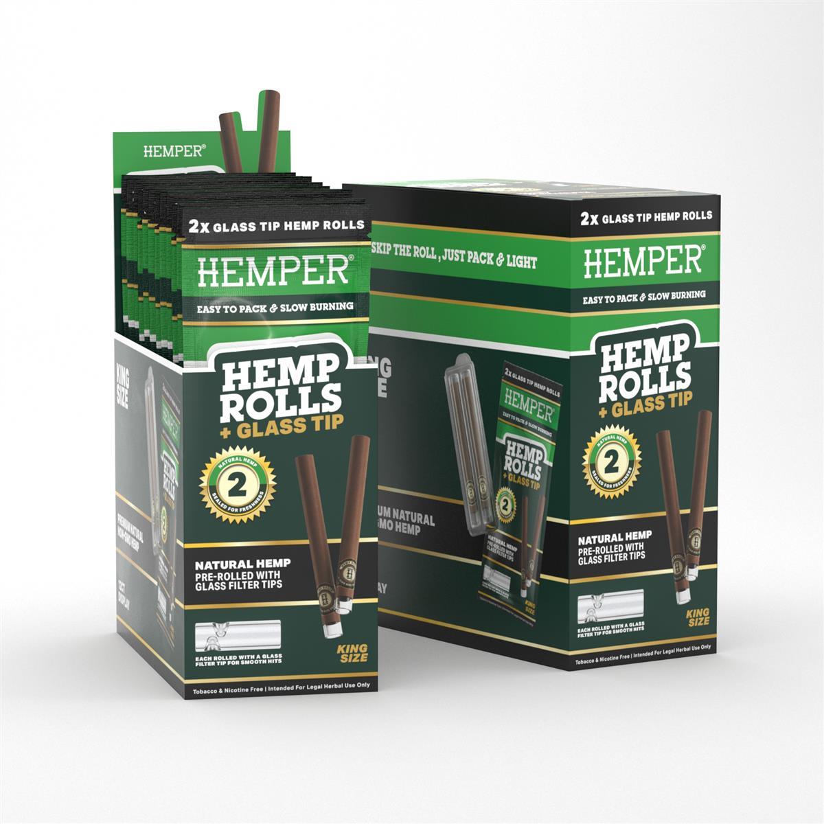 King Size Rolls + Glass Tip (2PK | DISPLAY 12x) - HEMPER
